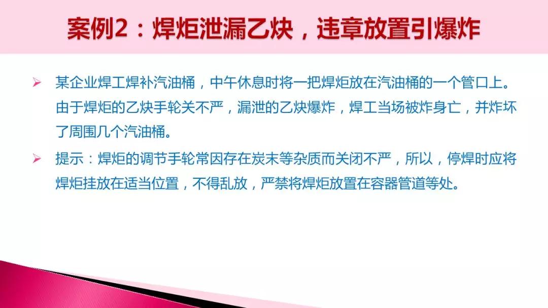 (1)嚴禁焊補切割未經(jīng)安全處理的燃料容器和管道。