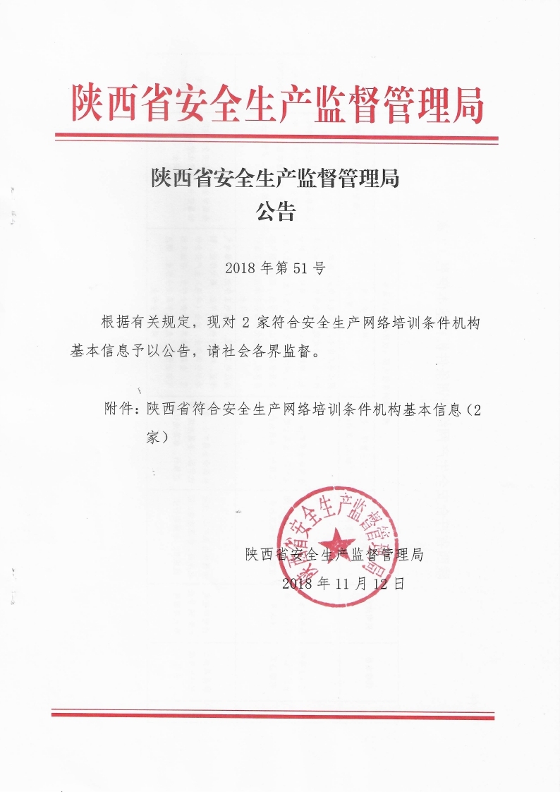 為進一步加強注冊安全工程師隊伍管理,提高注冊安全工程師專業素質和執業能力,根據《注冊安全工程師管理規定》和陜西省應急管理廳注冊安全工程師注冊規定,陜西鼎祥工程科技有限公司【陜西省安全生產監督管理局公告(2018年第51號)】決定舉辦注冊安全工程師繼續教育網絡培訓班。現將有關事項通知如下: